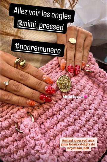 Les modèles faits main, comme chez Mimi, sont plus solides, plus épais et offrent des finitions uniques et travaillés. Les press-on industriels sont souvent plus fragiles et moins détaillés. Pour les reconnaitre, les press-on nails faits machine ont souvent un bout de plastique à l'extrémité de l'ongle qu'il faut limer.