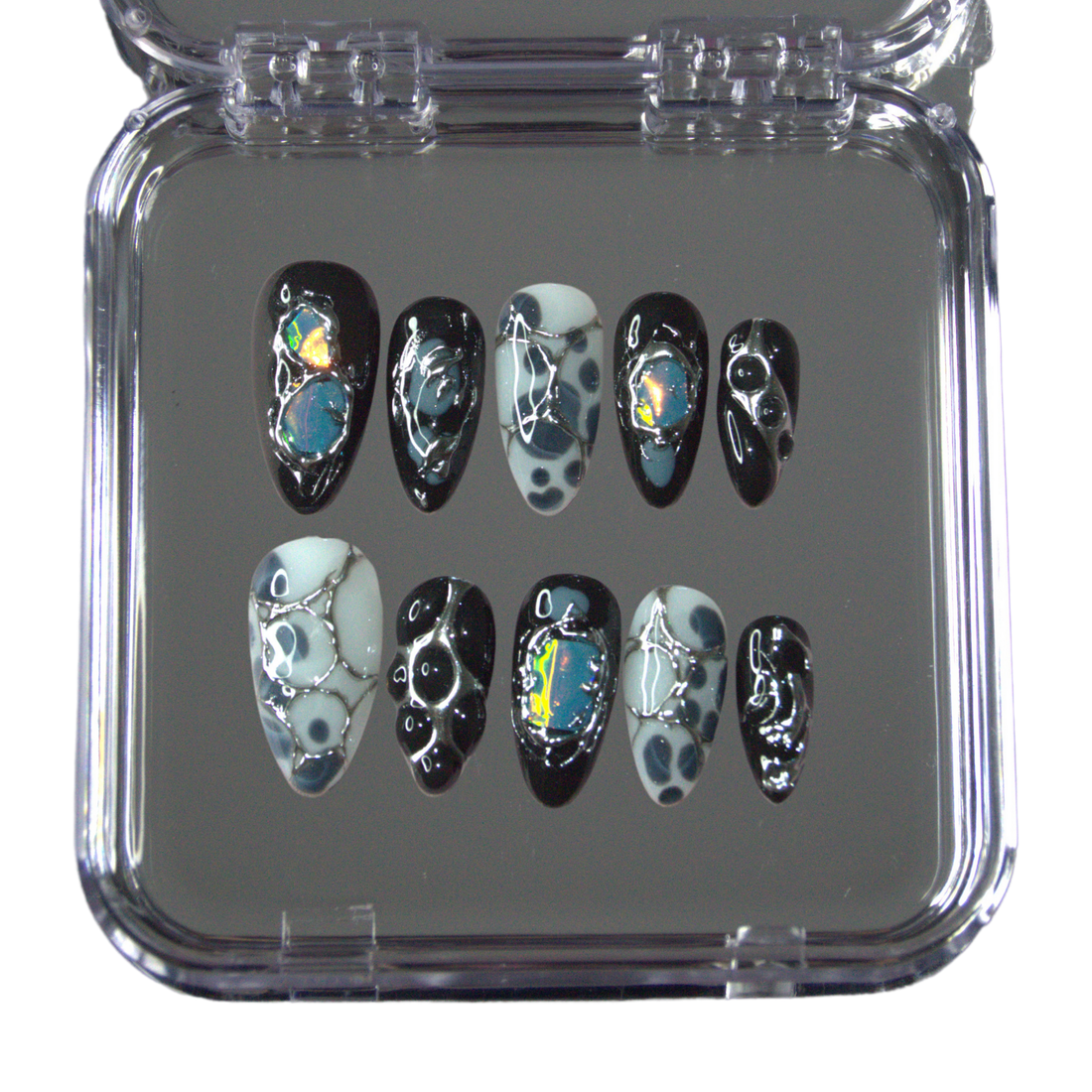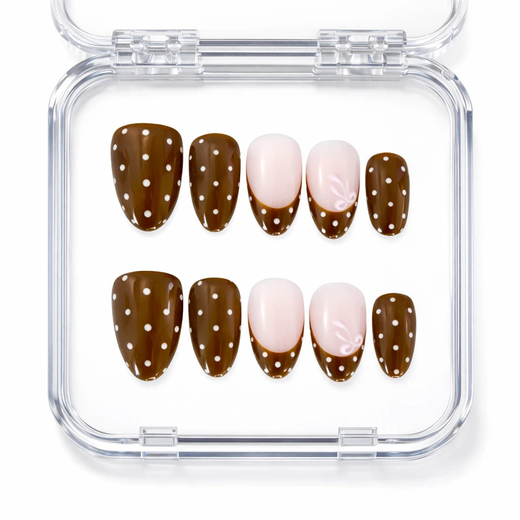 Les press-on nails sont des faux ongles réutilisables, à coller directement sur vos ongles naturels. Ils offrent un résultat digne d’un salon, sans abîmer l’ongle et avec une pose rapide (en quelques minutes seulement).