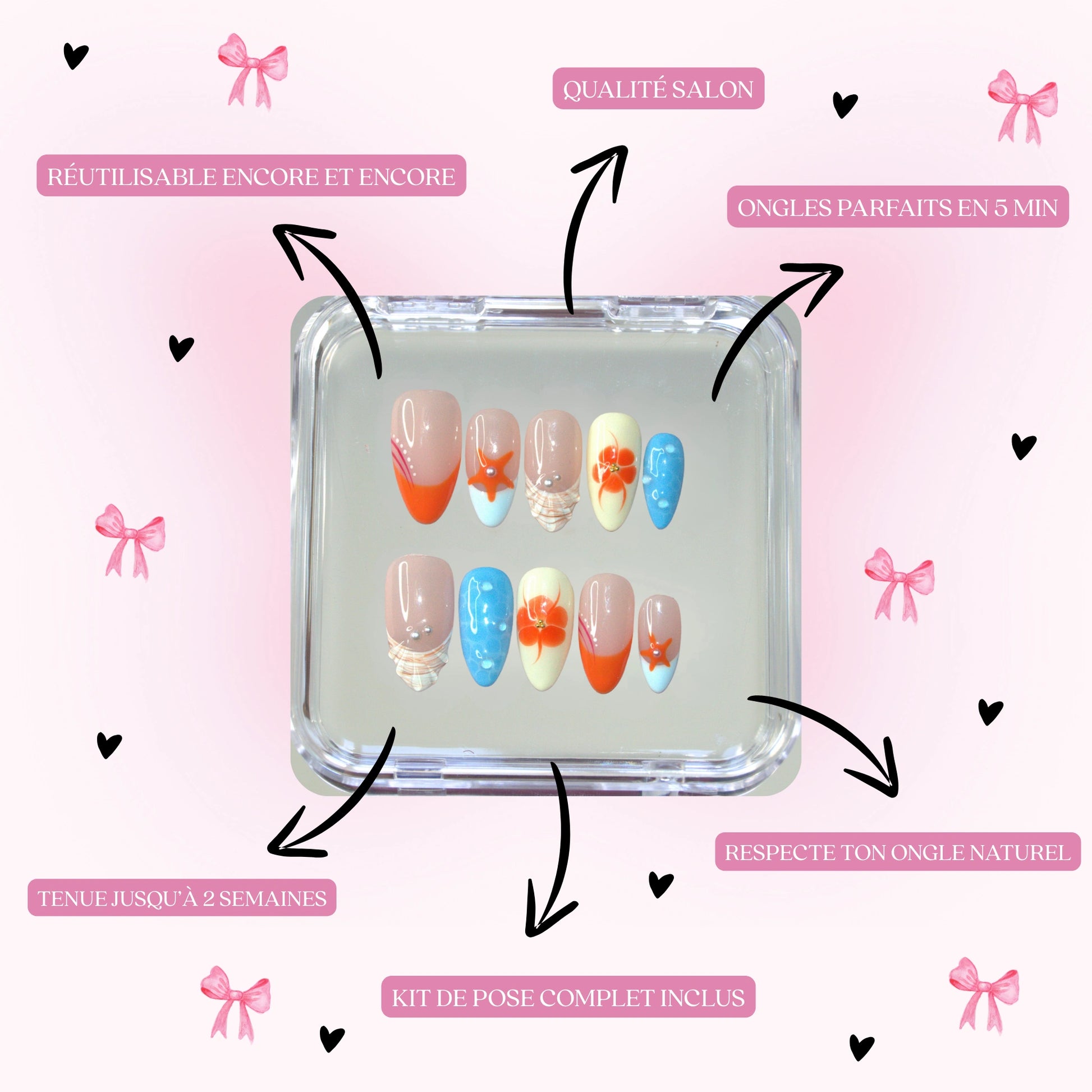 Each set is handmade with professional gels and polymers, for a result worthy of a salon manicure.