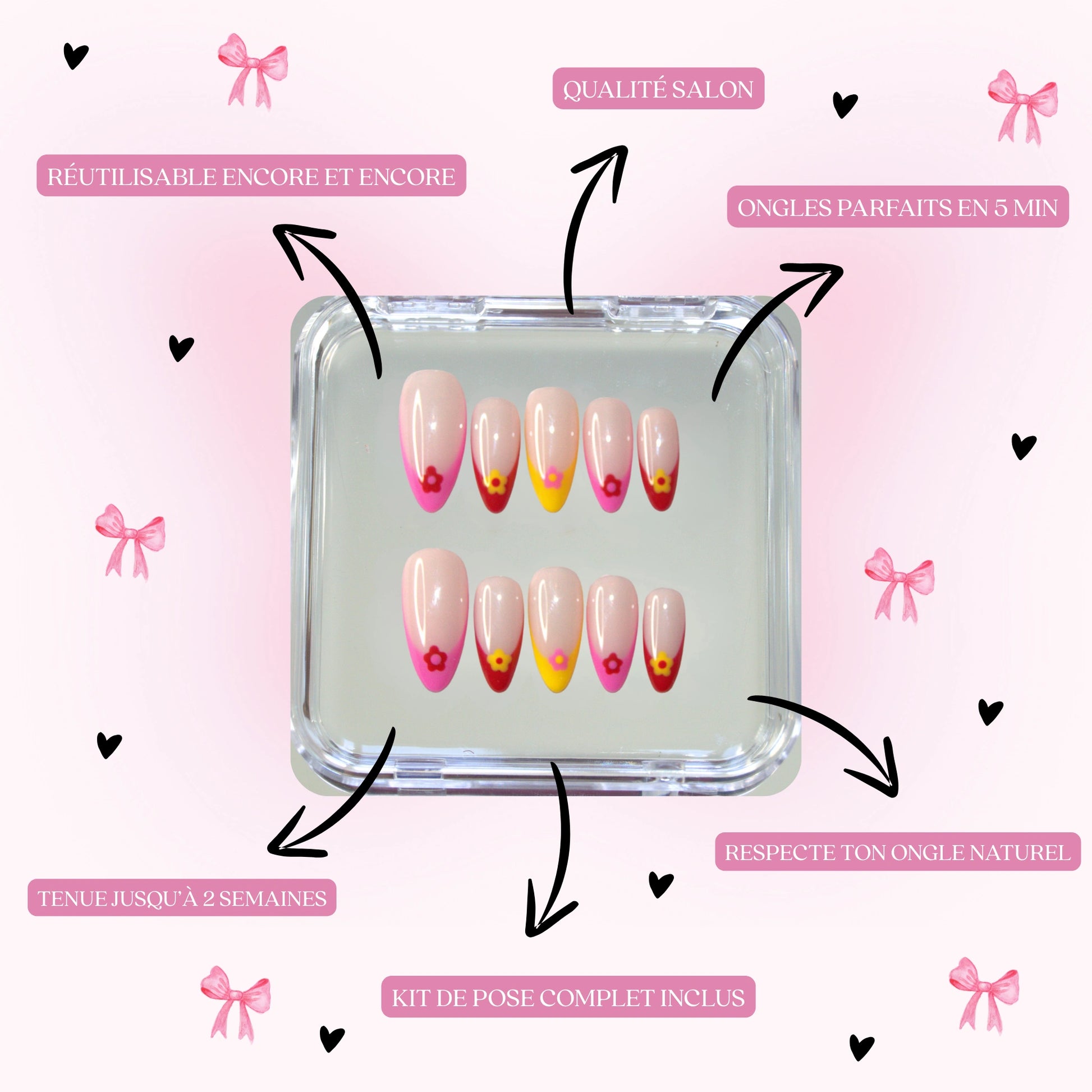 Each set is handmade with professional gels and polymers, for a result worthy of a salon manicure.