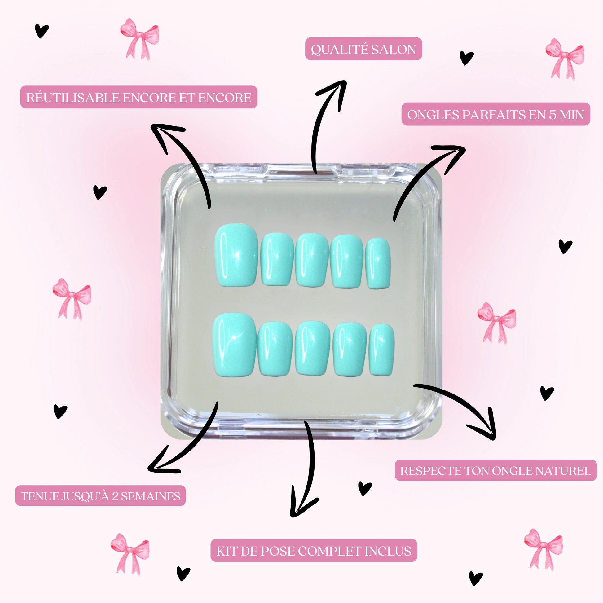 It depends on the method you choose: with gel pads, count 5 to 7 days: perfect for an event or everyday use. With glue, your false nails can last up to 14 days, depending on your daily routine. And the best part? You can take them off whenever you want and reuse them as much as you want, just peel them off carefully 🌸