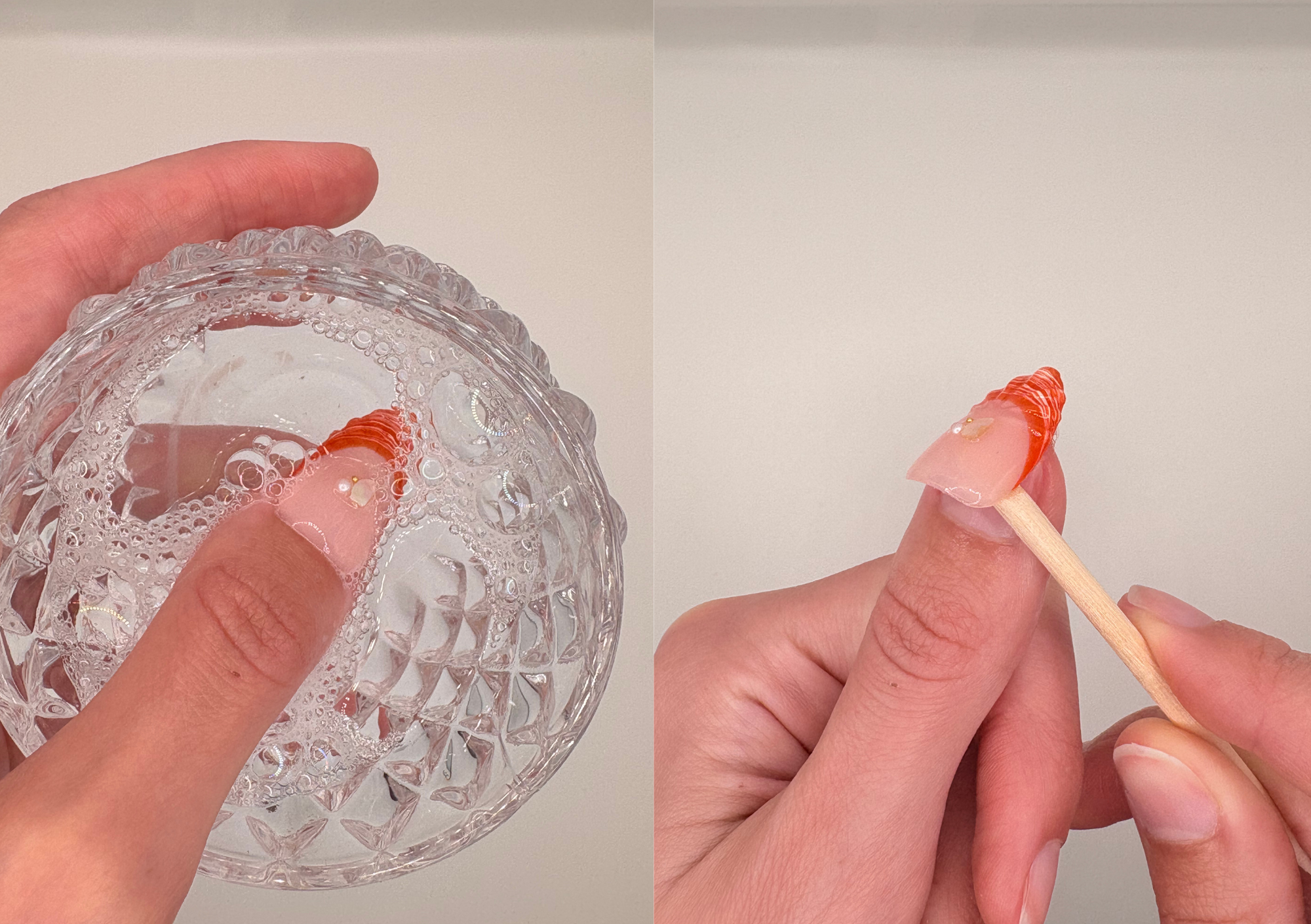 Avec la pointe du bâtonnet, retire leGel Pad pour le décoller de ton ongle naturel. Une fois propre et sèche, range ta capsule dans sa boîte. Elle est prête pour une nouvelle pose !