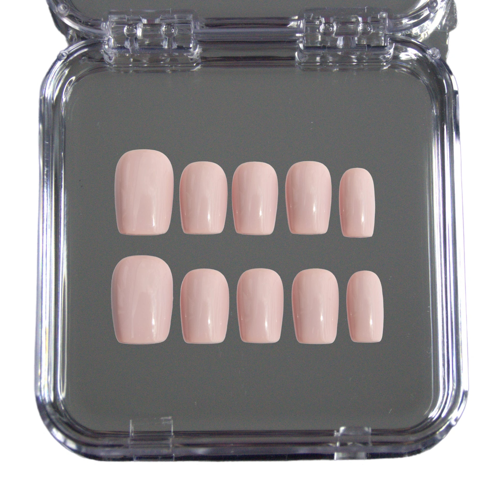 Faux ongles press-on faits main en rose pâle. Une teinte délicate et minimaliste, parfaite pour un rendu naturel et raffiné. Idéal pour le quotidien ou pour sublimer une tenue élégante sans excès.