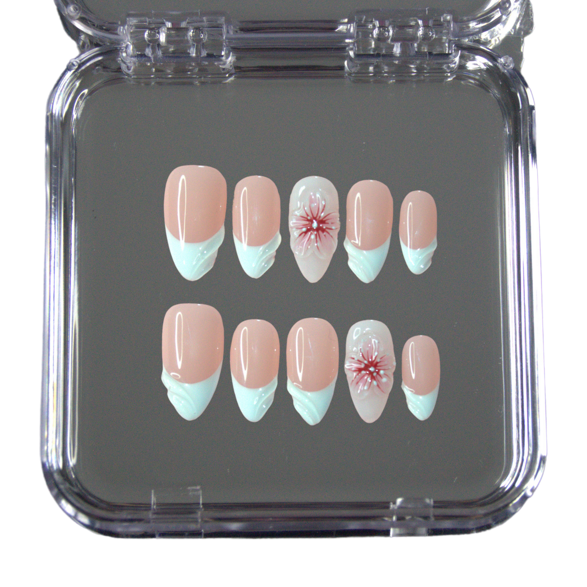 Les modèles faits main, comme chez Mimi, sont plus solides, plus épais et offrent des finitions uniques et travaillés. Les press-on industriels sont souvent plus fragiles et moins détaillés. Pour les reconnaitre, les press-on nails faits machine ont souvent un bout de plastique à l'extrémité de l'ongle qu'il faut limer.