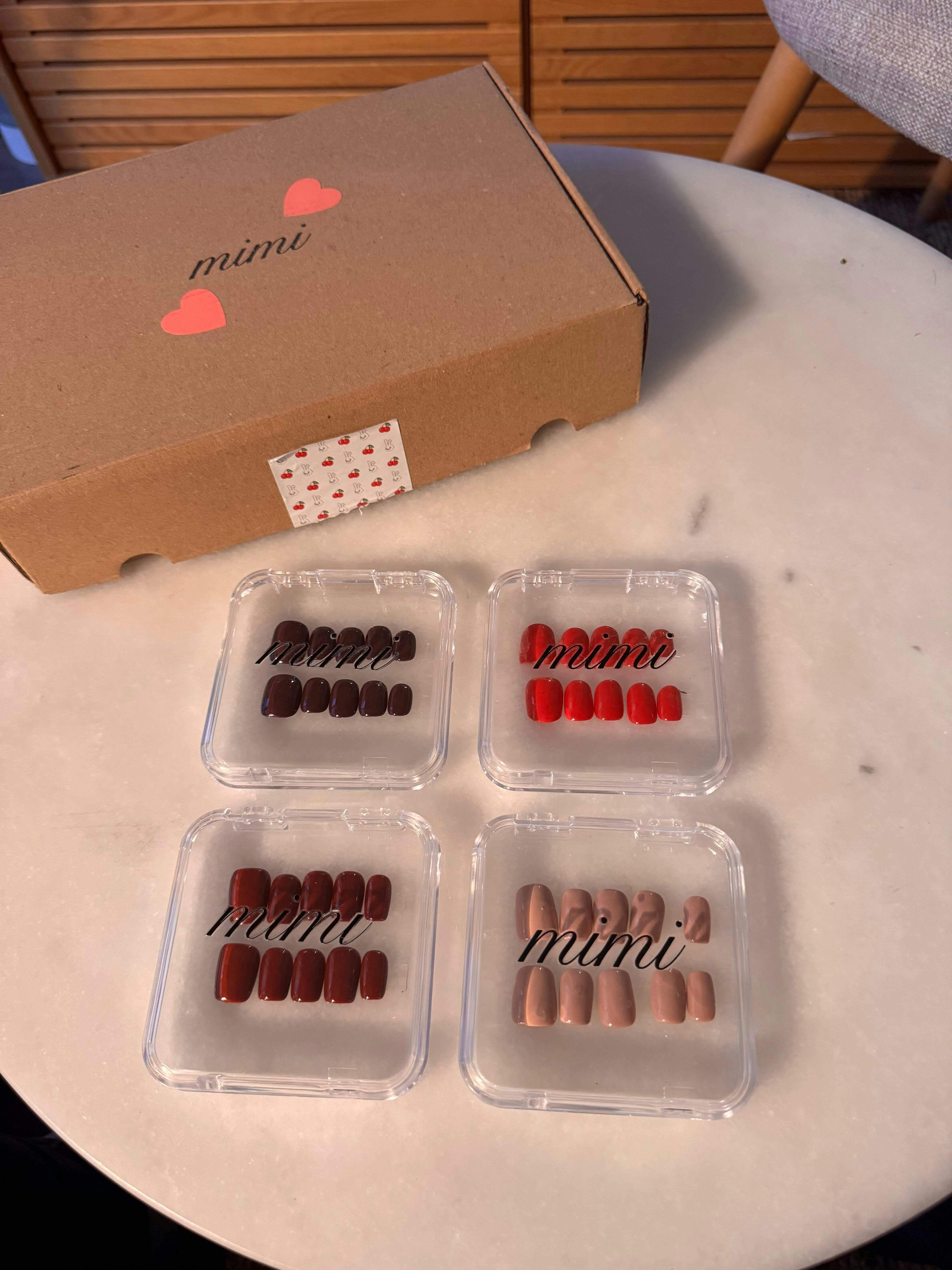 Pour Mimi, les press-on ne sont pas de simples faux ongles : ce sont de véritables accessoires de haute qualité, réalisés à la main en gel et acrylique premium, pensés pour durer et sublimer chaque détail.